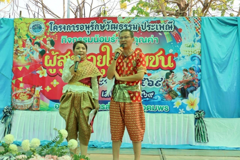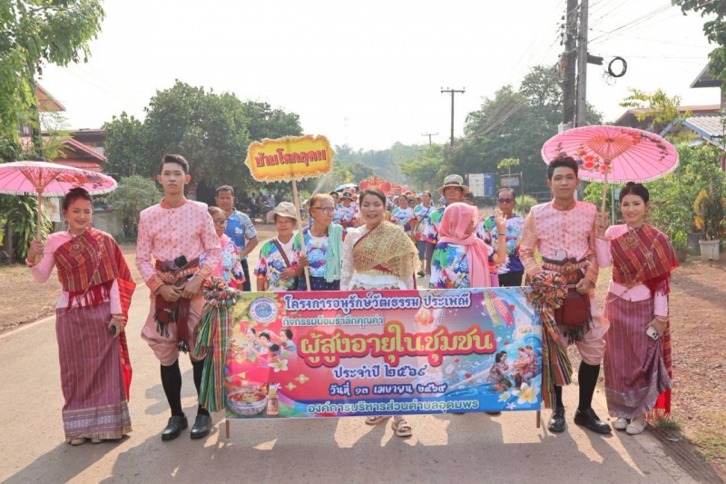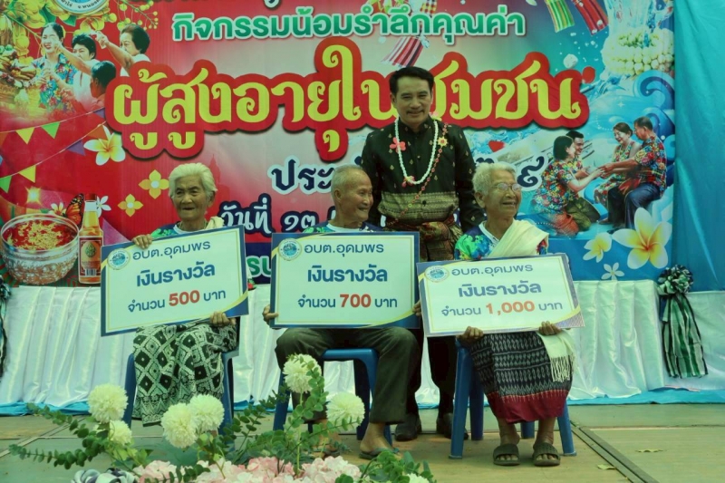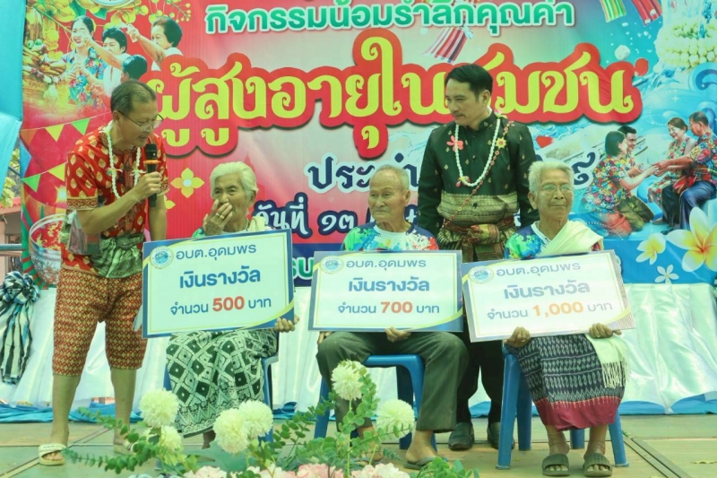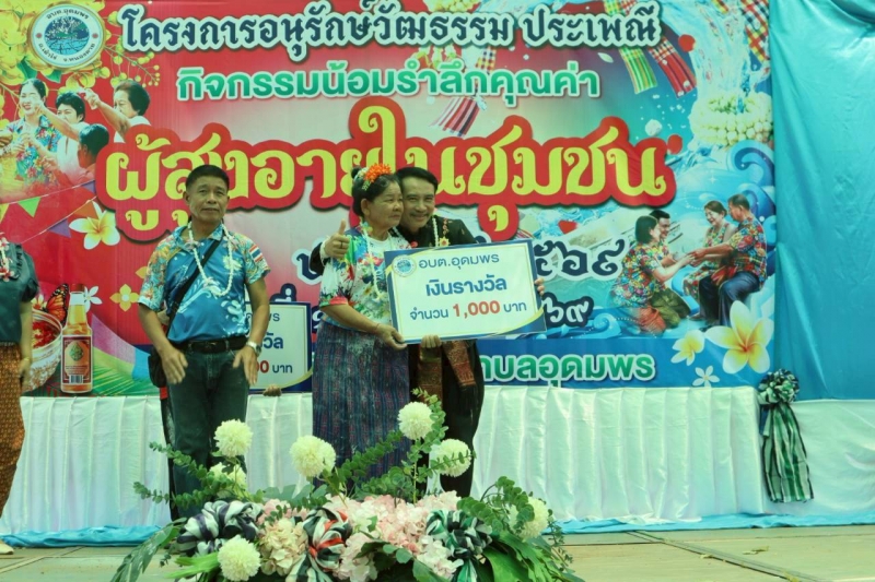 วันที่ 13 เมษายน 2569 เวลา 08.00 น. องค์การบริหารส่วนตำบลอุดมพร จัดโครงการอนุรักษ์วัฒนธรรมประเพณี กิจกรรมน้อมรำลึกถึงคุณค่าผู้สูงอายุในชุมชนตำบลอุดมพร ประจำปี 2569 (รดน้ำดำหัวผู้สูงอายุ วันสงกรานต์)โดยมี นาย คม จันทาทอง รองนายกองค์การบริหารส่วนจังหวัดหนองคาย และนางสาวชนก จันทาทอง ที่ปรึกษาองค์การบริหารส่วนจังหวัดหนองคาย เป็นประธานในพิธีเปิด นายสมบูรณ์ เต็มทวี นักจัดการงานทั่วไปชำนาญการ นางสาว วาสนา พันธ์พยัคฆ์ ผอ.กองสวัสดิการสังคม กล่าวต้อนรับประธาน นายสรสิทธิ์ คงดี นายกองค์การบริหารส่วนตำบลอุดมพร กล่าวรายงานฯ พร้อมด้วย คณะผู้บริหาร สมาชิกสภาฯ ผู้นำชุมชน หัวหน้าส่วนราชการ พนักงานเจ้าหน้าที่ ภาคีเครือข่ายทุกภาคส่วน ตลอดจนผู้สูงอายุตำบลอุดมพร ทั้ง 14 หมู่บ้านร่วมในกิจกรรม โดยมีวัตถุประสงค์เพื่อสืบสานวัฒนธรรมไทย แสดงความกตัญญูกตเวทีต่อผู้สูงอายุ เสริมสร้างความอบอุ่นในครอบครัวและชุมชน อีกทั้งยังสร้างขวัญกำลังใจให้ผู้สูงอายุรู้สึกถึงคุณค่า ไม่ถูกทอดทิ้ง กิจกรรมรดน้ำดำหัวขอพรผู้สูงอายุ รดน้ำดำหัวขอพรคณะผู้บริหาร และได้แจกของที่ระลึกให้ผู้สูงอายุทุกท่าน เพื่อใช้ประโยชน์ โดยภายหลังการพบปะ อวยพรผู้สูงอายุเนื่องในวันปีใหม่ไทย