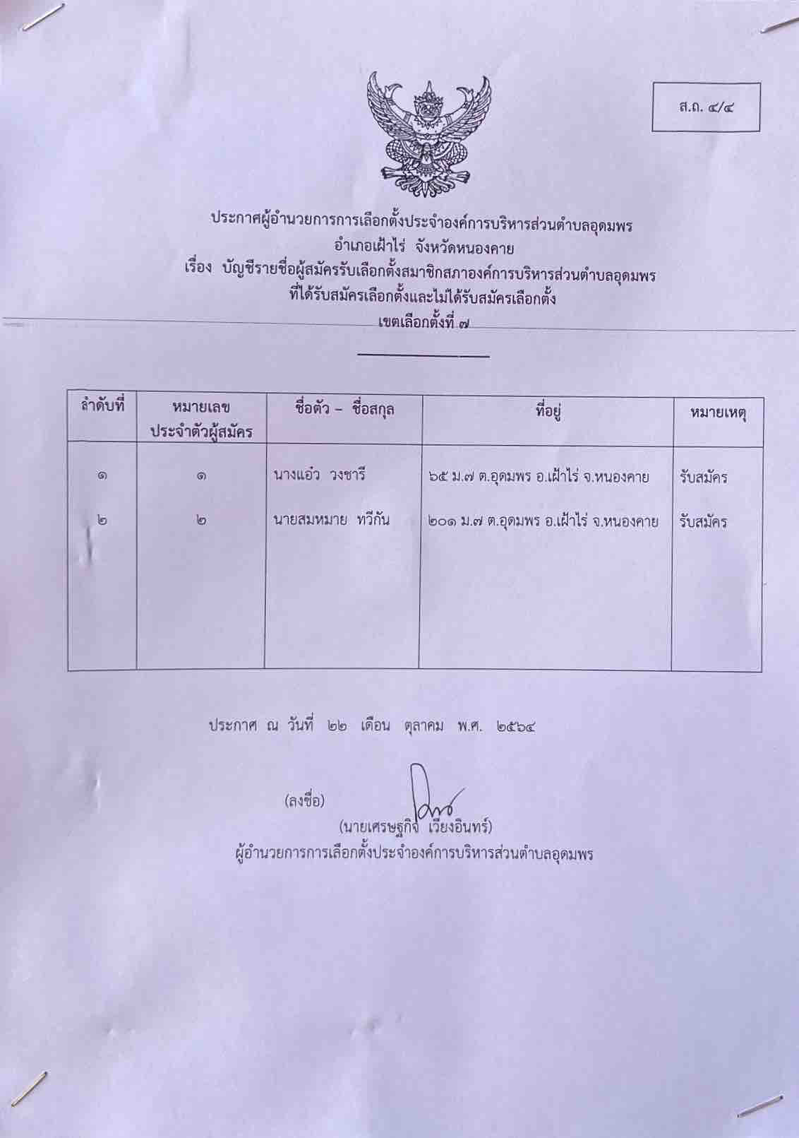 ผลการนับคะแนนเลือกตั้งนายกองค์การบริหารส่วนตำบลอุด...