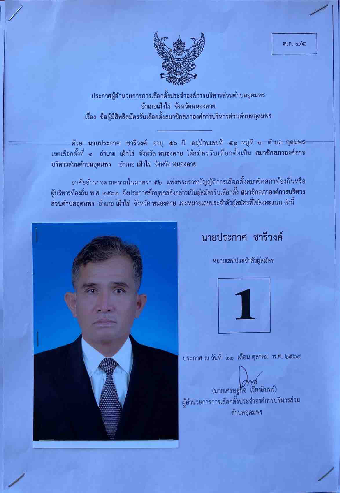 บัญชีรายชื่อผู้สมัครเลือกตั้งสมาชิกสภาองค์การบริหารส่วนตำบลอุดมพร เขตเลือกตั้งที่ 1