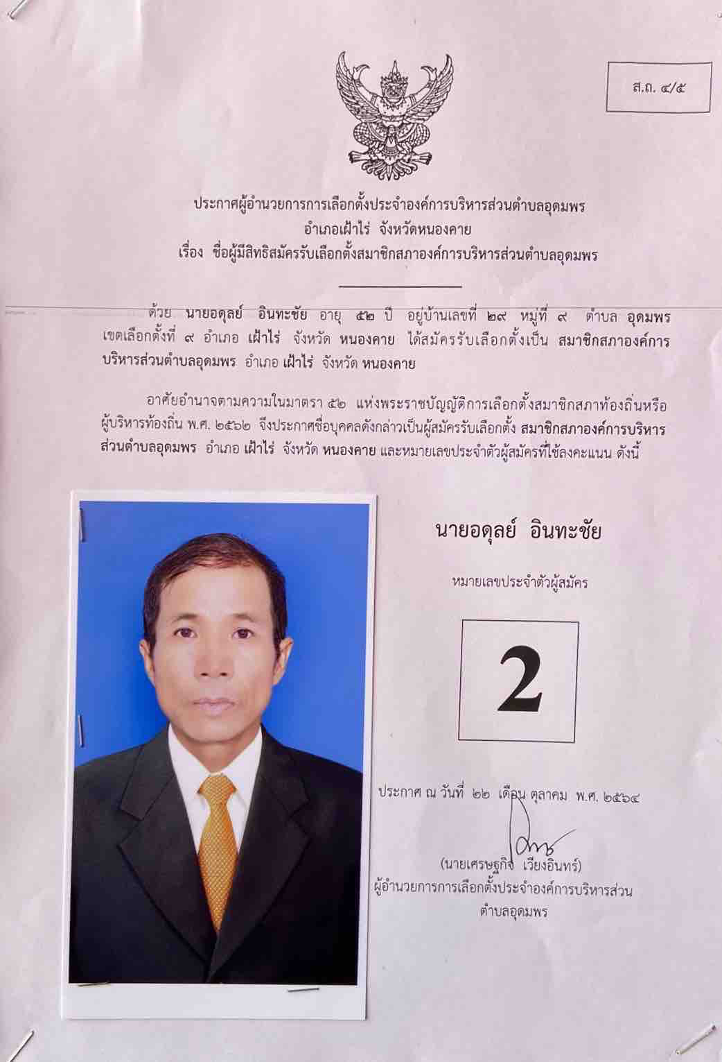 บัญชีรายชื่อผู้สมัครเลือกตั้งสมาชิกสภาองค์การบริหารส่วนตำบลอุดมพร เขตเลือกตั้งที่ 9