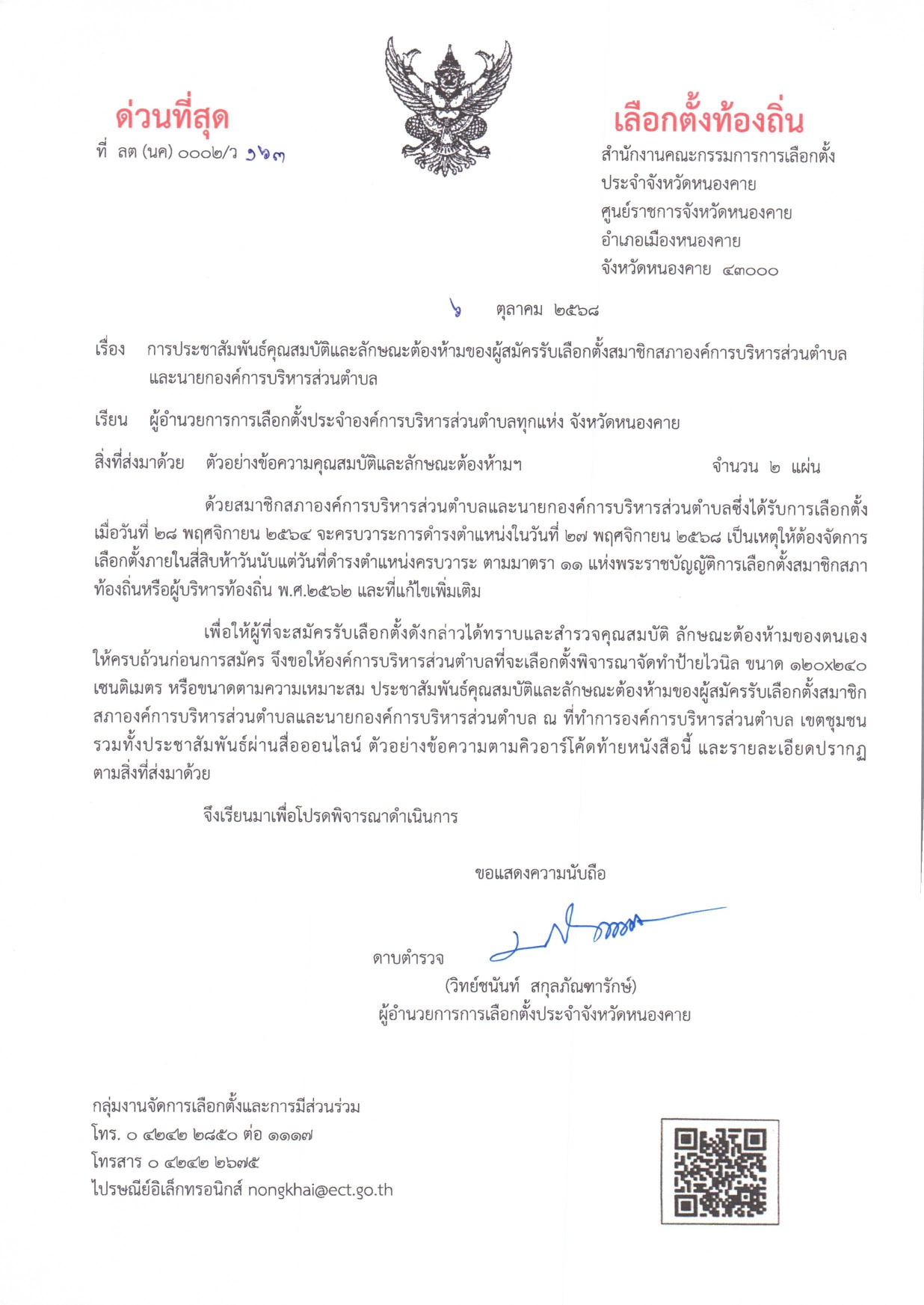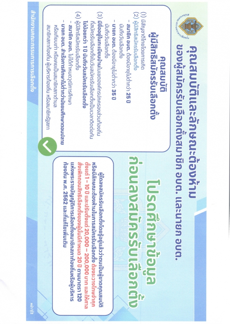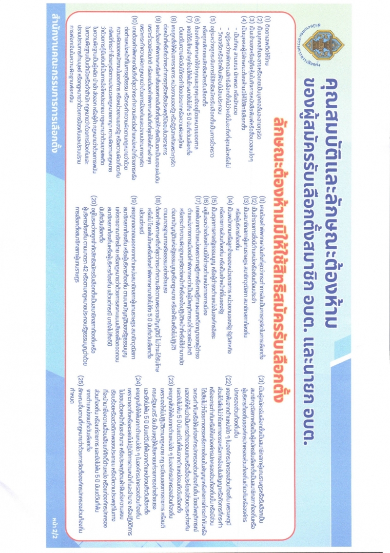 การประชาสัมพันธ์คุณสมบัติและลักษณะต้องห้ามของผู้สมัครรับเลือกตั้งสมาชิกสภาองค์การบริหารส่วนตำบลและนายกองค์การบริหารส่วนตำบล